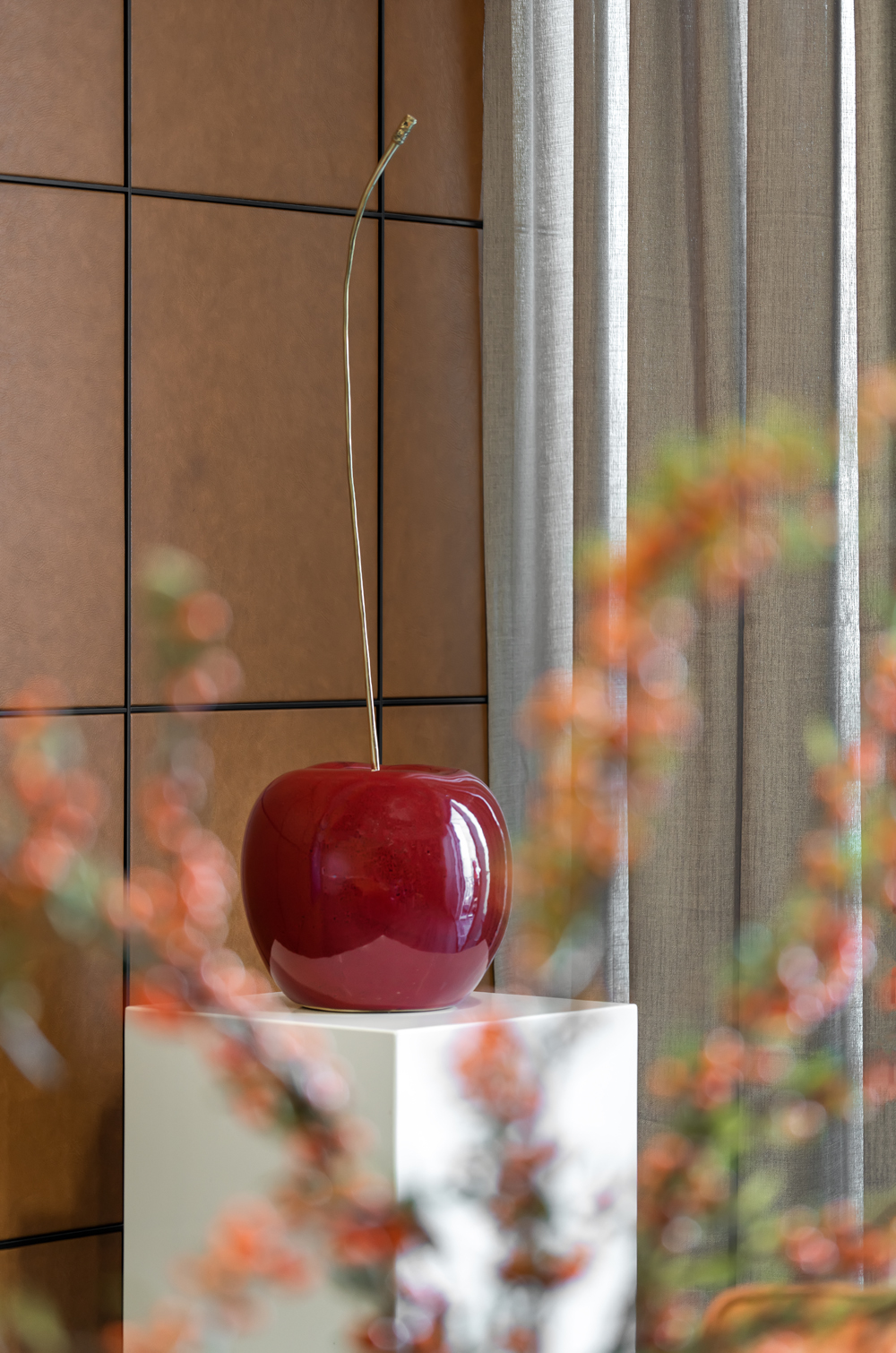 設(shè)計除了考慮到會議培訓時的功能性需求,同時也關(guān)注了空間的藝術(shù)性表達,彰顯客戶精尚不羈的美學風范。紅蕊萌動,清新雅致,櫻桃擺件形象生動,大自然無時不刻在賦予人們關(guān)于美學的靈感啟迪,或絢爛,或無華,或凝練,或簡約,交織譜寫新的空間藝境。