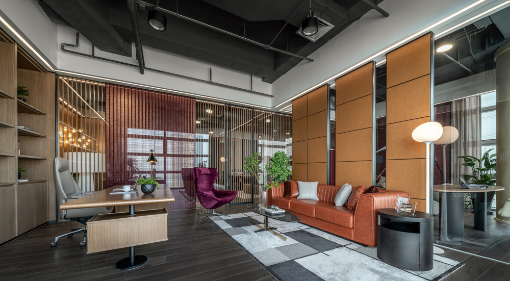 設(shè)計師鄭鴻基于客戶的品牌發(fā)展定位與審美藝識,以寶格麗風格的古典奢華糅和現(xiàn)代主義的精簡,通過鮮明濃郁的色彩搭配,舒適且人性化的細節(jié),呈現(xiàn)華麗經(jīng)典的設(shè)計美學,詮釋辦公新業(yè)態(tài),致敬精致迷人的寶格麗精神。