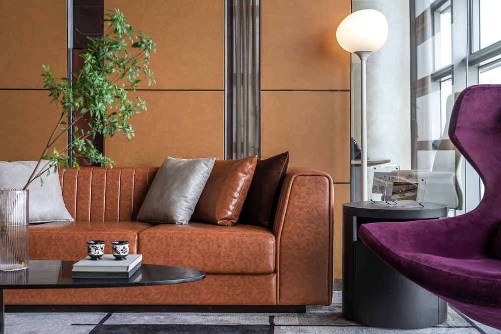 皮革是一位杰出的畫師,從墻面到椅面的呈現(xiàn),每一筆的刻畫都優(yōu)雅如斯,富蘊格調(diào)。整個氛圍有暖棕色、木色和黑色的默契配合,朝著前方深邃一眼,深圳灣城市夜景如水倒映眼前,商業(yè)精英品調(diào)無聲吐露。