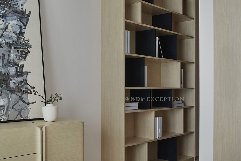當空間滿足了居者的個性化需求后,我們離真實且美的生活又近了一步。開放性多功能收納柜將日常的小驚喜匯聚一起,一開一合間,書香四溢的讀本和造型別致的藏品,各自釋放著品調十足的韻味。