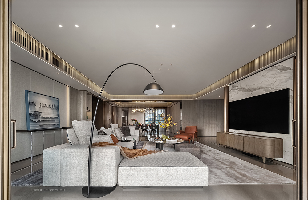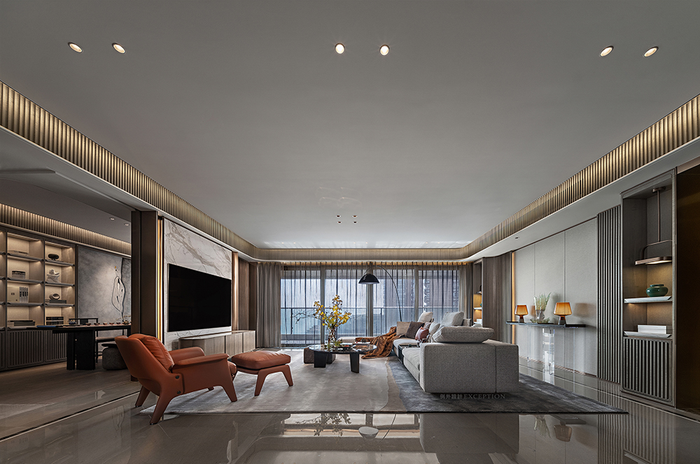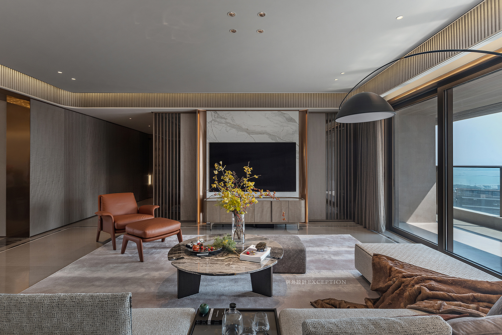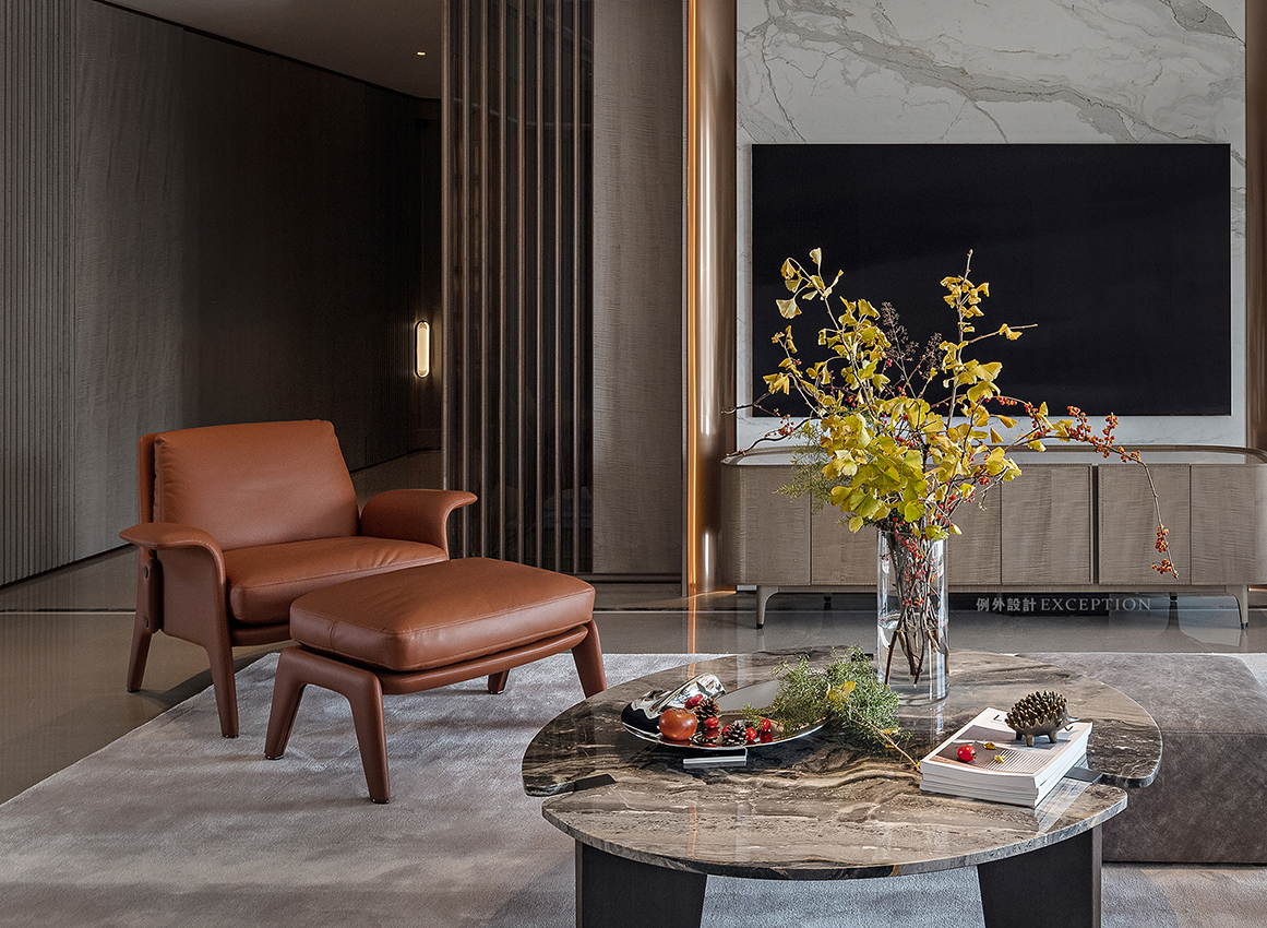 基于業(yè)主的氣質(zhì)與品位,以現(xiàn)代精奢風(fēng)定調(diào)空間的氣場(chǎng),通過(guò)強(qiáng)化自然木作、山水石紋、圓的意象,不經(jīng)意的東方元素,為空間引入一份清雅與別致。