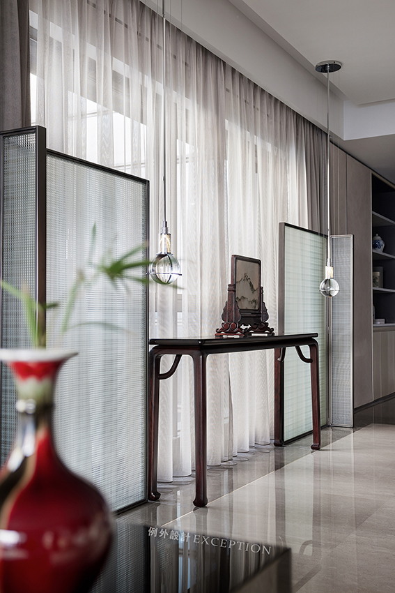 本案客戶作為傳統(tǒng)文化的重度愛好者,有著很多難得一見的家具珍藏。如何將傳統(tǒng)的器物與當(dāng)代生活的場域完美融合,實現(xiàn)傳統(tǒng)文化的煥新與傳承,成為設(shè)計前期就必須考慮的課題。