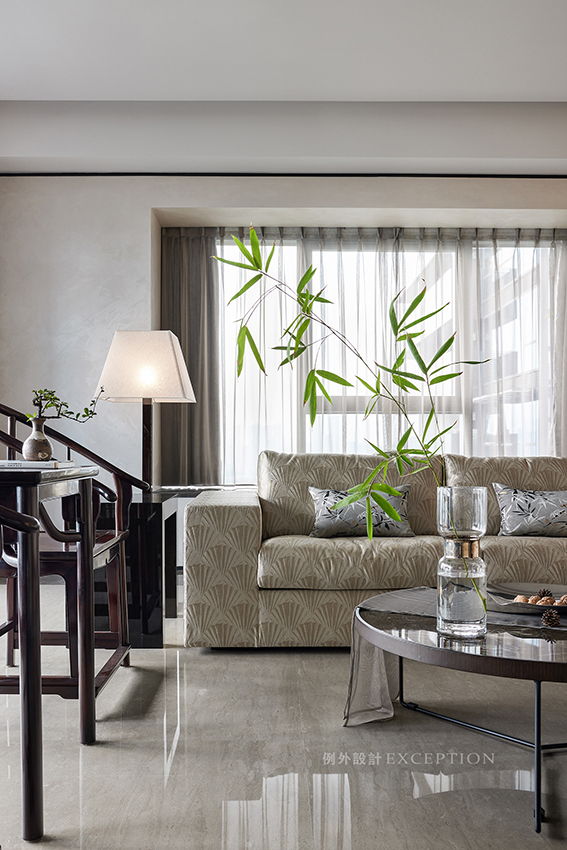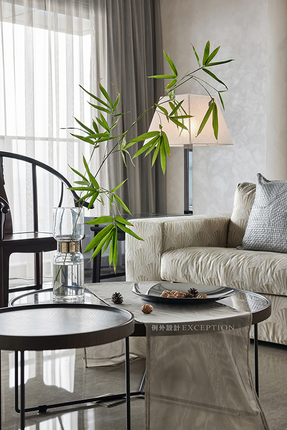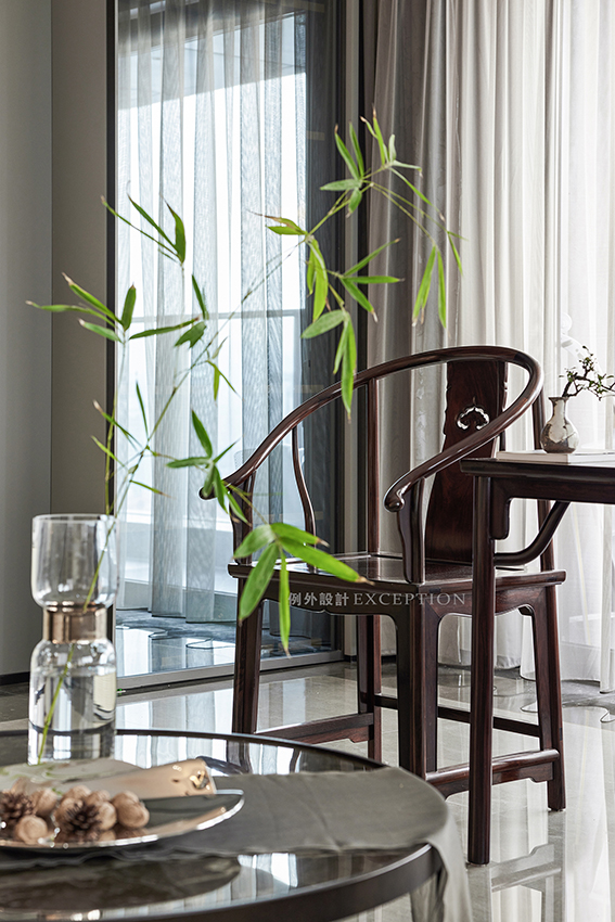 古人愛竹,愛其高潔的風(fēng)骨,寧可食無肉,不可居無竹。一葉修竹的青翠穿越千年,在如今的人世風(fēng)物里,和諧相生,風(fēng)雅猶存。從古雅的圈椅和現(xiàn)代形制的沙發(fā)之間跳脫出來,靈動娉婷,仿若接續(xù)了兩個世界,給空間引入秀逸與安然。