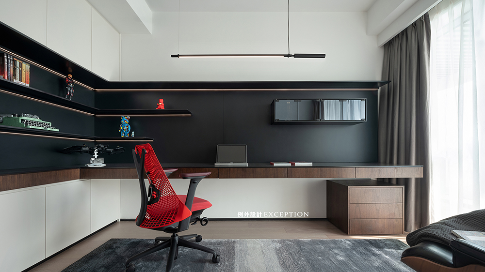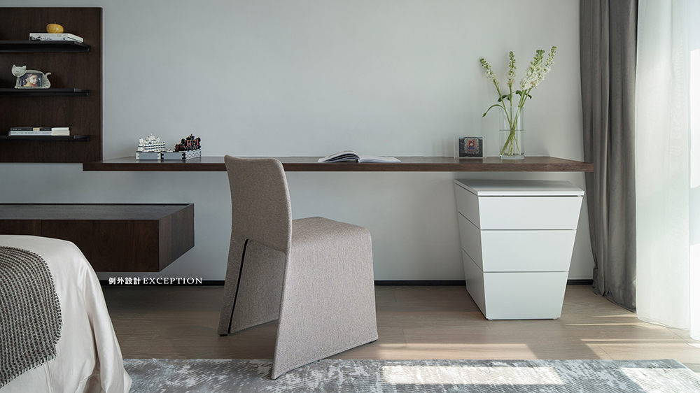 男孩房觸手可及深圳灣的落日和淡淡霧靄,流線的窗形,融入結(jié)構(gòu)主義的表現(xiàn)力,也讓休憩之余的視覺(jué)審美擁有了自然清雅的落點(diǎn)。