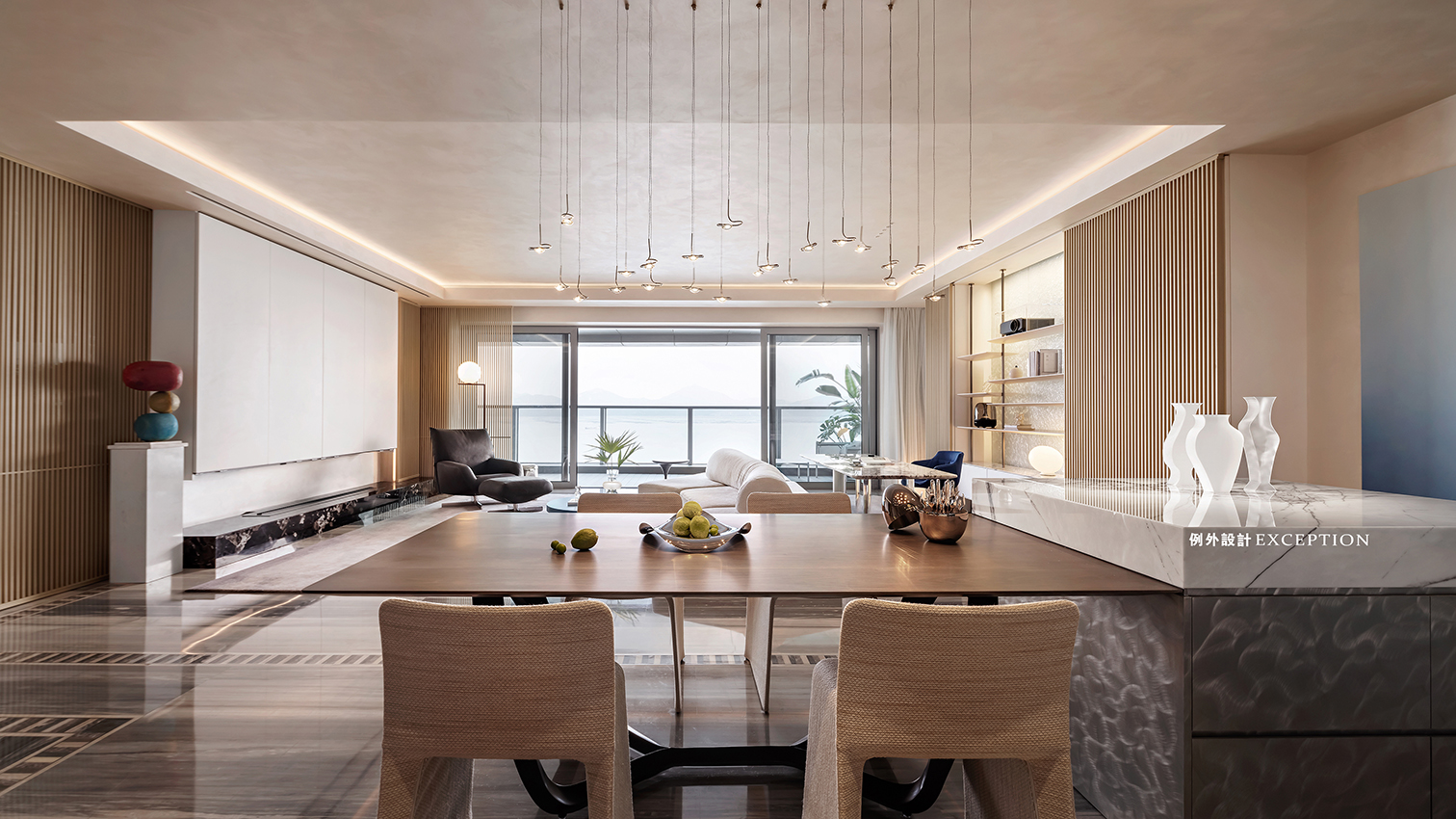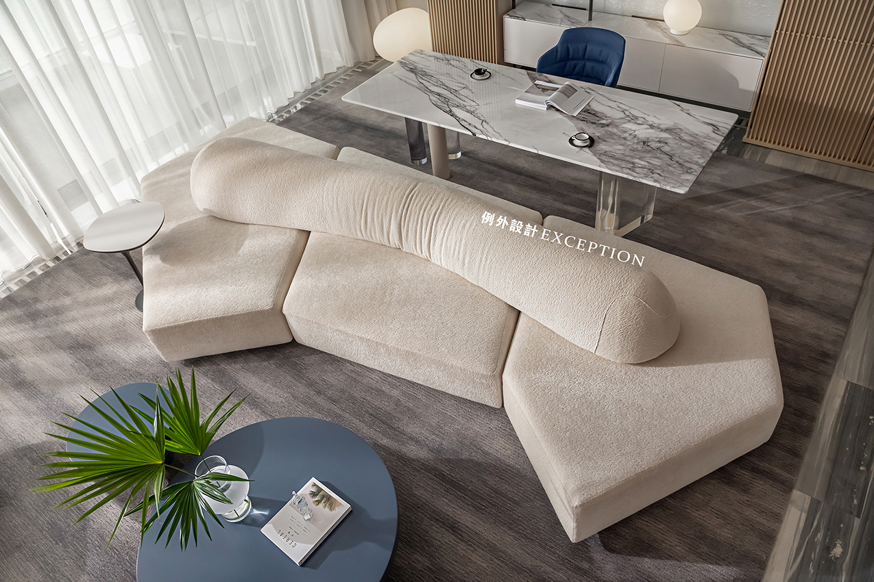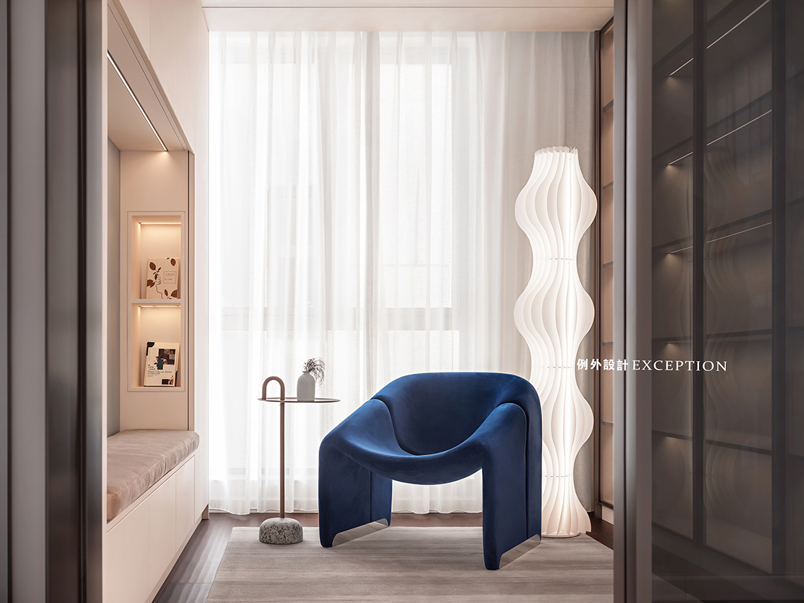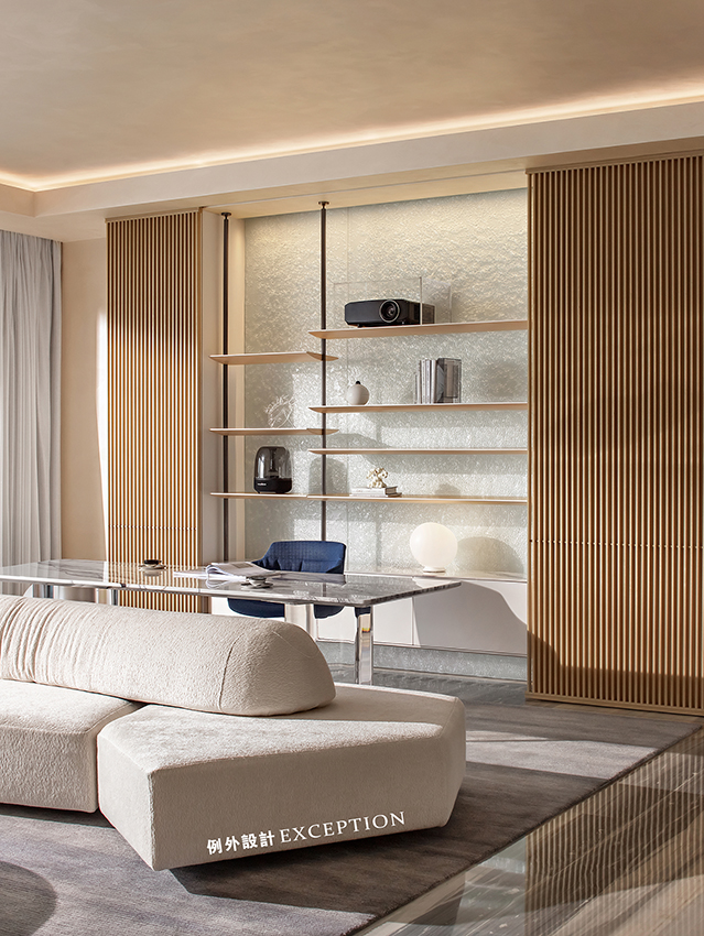 當(dāng)滿目海景遇上懂生活的人,空間的故事又多了一層韻味。雙向而立的沙發(fā)成為客廳和書房功能的鏈接,創(chuàng)造出更加豐富的生活場(chǎng)景。家人可以一起看電影、紀(jì)錄片,一旁的閱讀區(qū)也是放松身心的不錯(cuò)選擇,或者在單人椅側(cè)目而望,光影與自然,人情與況味,在這里靜靜交織。