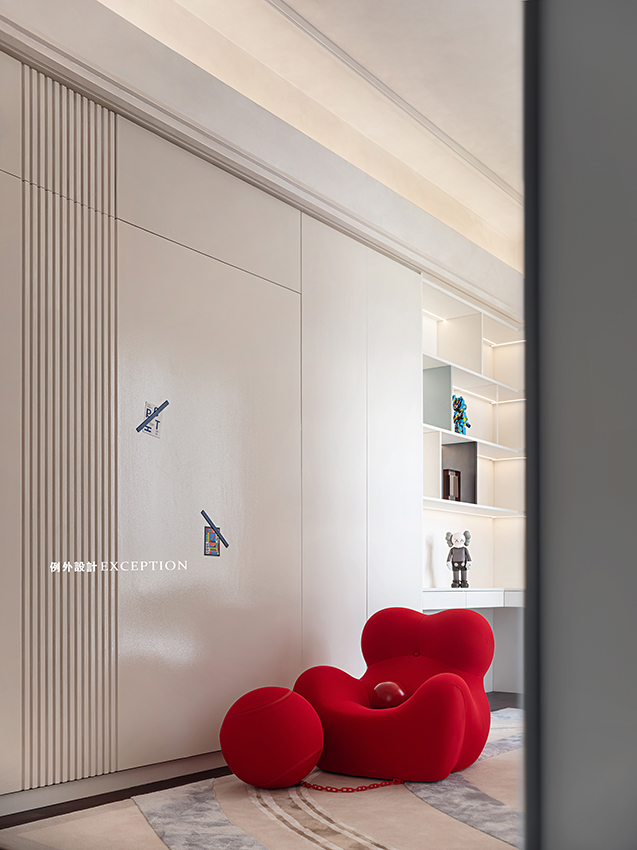 設(shè)計(jì)師希望兒童娛樂區(qū)是一處能承載個(gè)性、安放快樂的異想世界。繪畫閱讀區(qū)、奇趣手辦和磁性白板墻,多重場(chǎng)景的構(gòu)設(shè)豐富了他們的成長(zhǎng)記憶,讓童年的快樂蕩漾在生活的每一個(gè)角落。