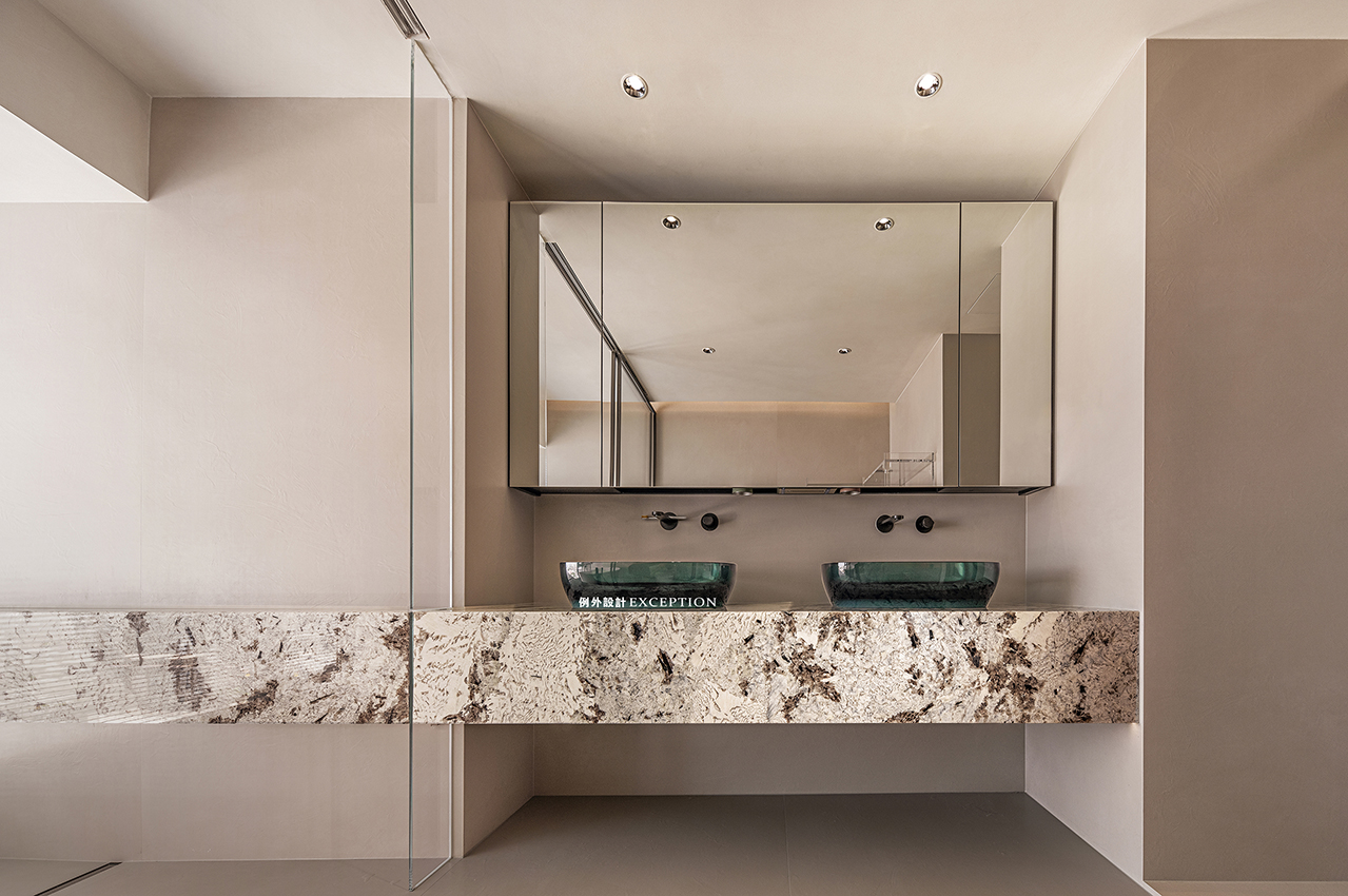 主衛(wèi)清爽簡潔素樸,沒有過多的裝飾,全景落地窗賦予空間良好的通透感,在張弛有度的居住哲學(xué)中,保留對生活最純粹的感受和向往。