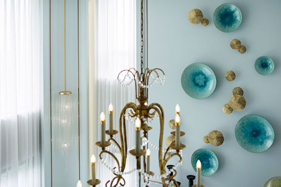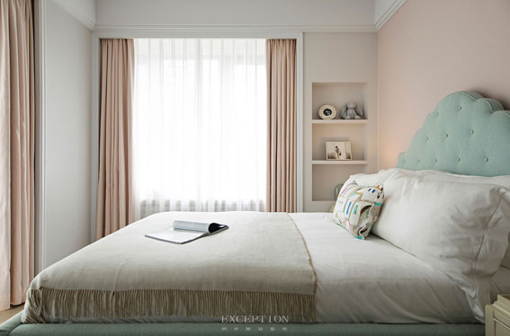 客廳有一種撲面而來的女性氣質(zhì),除了溫柔藍(lán)色帶來的第一視感,還有面料所蘊(yùn)含的神奇魔力:精細(xì)規(guī)則的紋路、面包般的外形與松軟觸感。