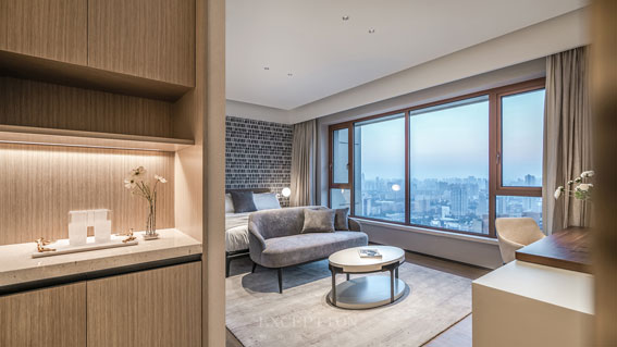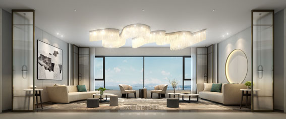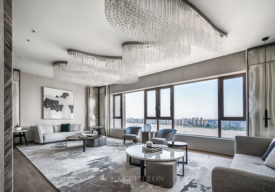 一個(gè)融合雅澹氣質(zhì)與休閑氛圍的會(huì)客空間,需要注重空間的私密感和尊享氣質(zhì)。超大面積落地窗引入室外無限江景,東方意象與現(xiàn)代簡約藝術(shù)在空間中相交織,打造靜雅脫俗的美學(xué)體驗(yàn)。