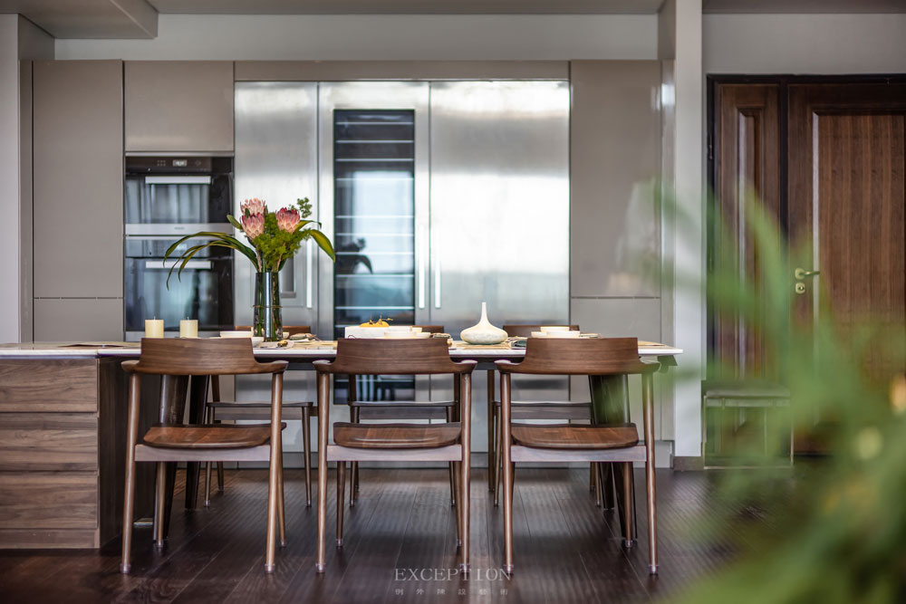 開放式客餐廳的布局,留給居者更多的互動(dòng)空間。大理石、鋼木材質(zhì)、格柵的搭配加上禪意十足的擺件,傳統(tǒng)與現(xiàn)代在此達(dá)成了完美的和解。晨起日光和煦,夜間月色朦朧,有花香盈懷,任松風(fēng)颯颯,食光微甜,人間無(wú)恙。