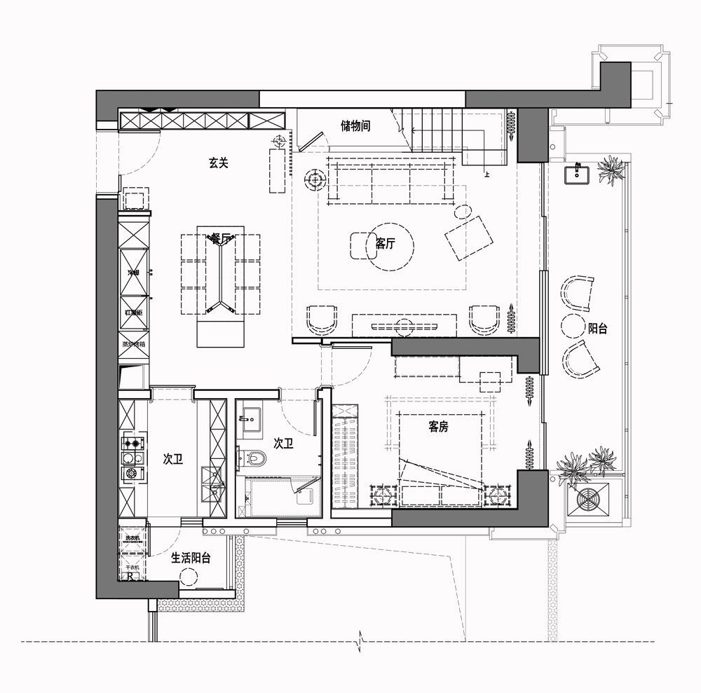 2、彌補(bǔ)了原戶型采光不足的缺陷,同時(shí)擴(kuò)大了餐廳的面積,并充分利用好樓梯下方空間打造了一個(gè)儲(chǔ)物間,增加了儲(chǔ)物功能。