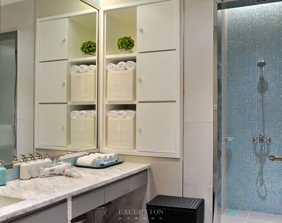 淋浴室,簡約現(xiàn)代家私搭配素凈的顏色,白與藍(lán)和諧配比帶來最柔和的視覺感受,塑造干凈健康的環(huán)境氛圍,讓媽媽們得以在最安心的環(huán)境下完成梳洗。