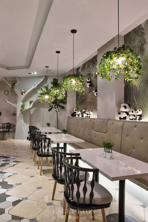 黑白灰的經(jīng)典用色搭配,讓整個(gè)空間更加有層次感,隨處可見(jiàn)的植被撩動(dòng)心弦。在這樣的場(chǎng)景,還不快快抱起熊貓寶寶來(lái)張美美的自拍吧!
