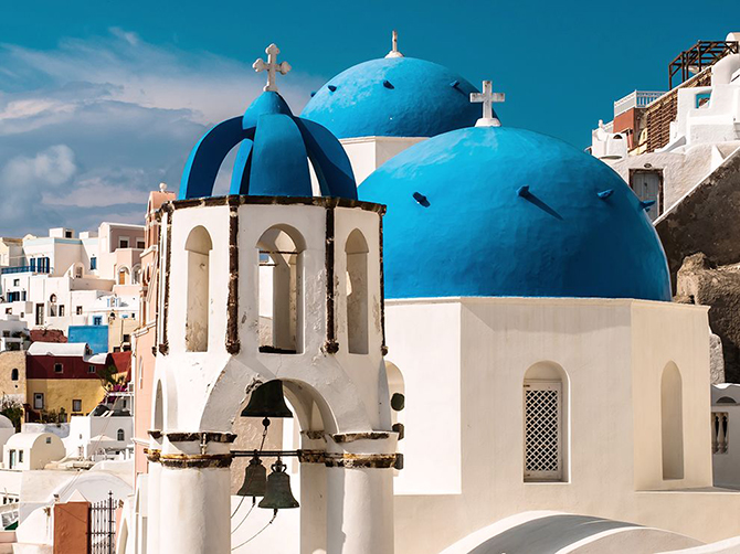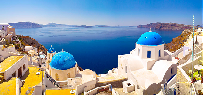 圣托里尼島就是藍(lán)白相知的色彩天堂,無數(shù)的白色小屋依山而建,屋墻全是白色,屋頂為深藍(lán)色,與天空、海洋渾然一體,形成了地中海獨(dú)有的景觀。