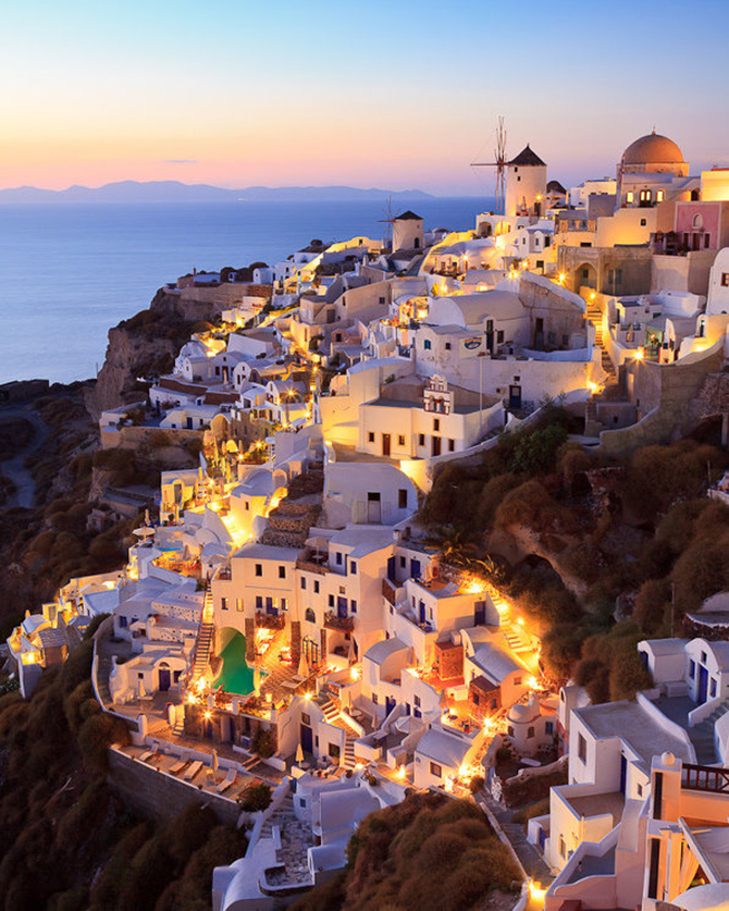 日落時(shí)分的圣托里尼,雋美靜謐如斯,伴著愛人,只愿沉醉此刻。