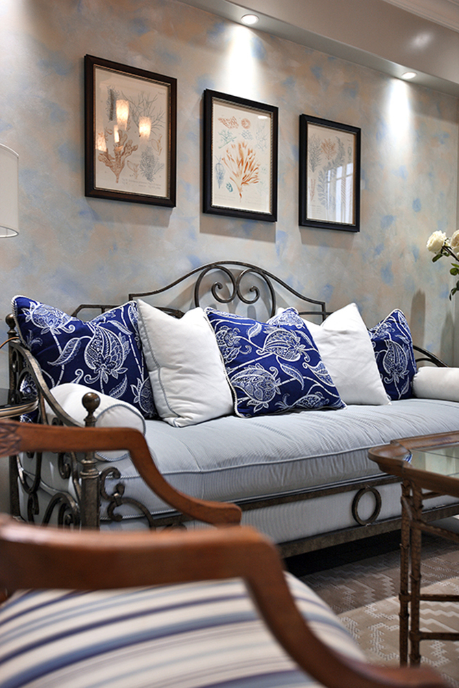 在設(shè)計(jì)中,我們盡量在合適的風(fēng)格背景下,把蔚藍(lán)色海岸與白色沙灘的純美組合融入軟裝中,進(jìn)而為居者帶來貼近自然的美妙感受。