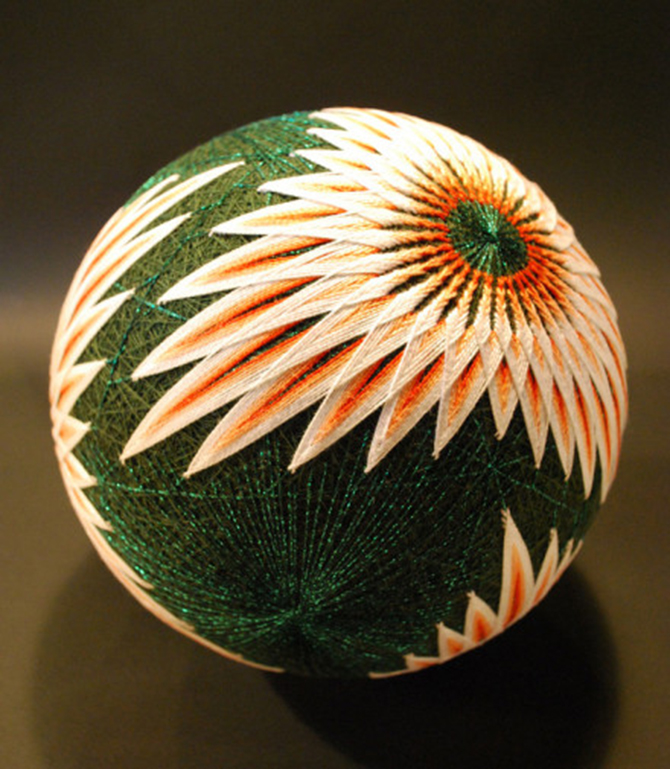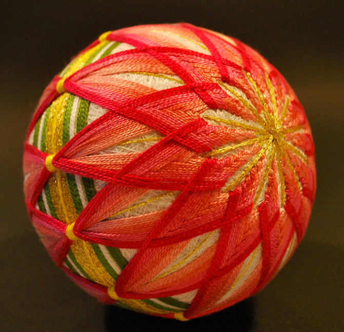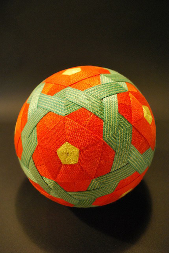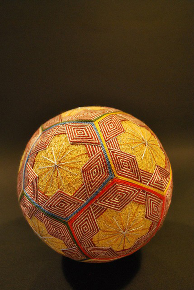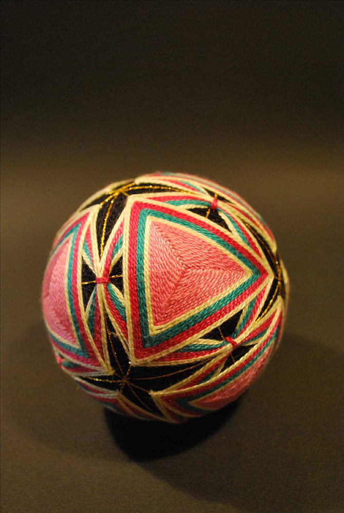 起初,鞠造型普通,但是在日本經過幾個世紀的傳承,發(fā)展為一種民間手工藝術,成為了一種日本傳統(tǒng)玩具,喚作手鞠球(日語:てまり、手まり)、又稱手球。它使用制作和服剩余的邊角料,填充成球狀,然后用多彩絲線纏繞成幾何圖形,形態(tài)略大于壘球,略小于手球。