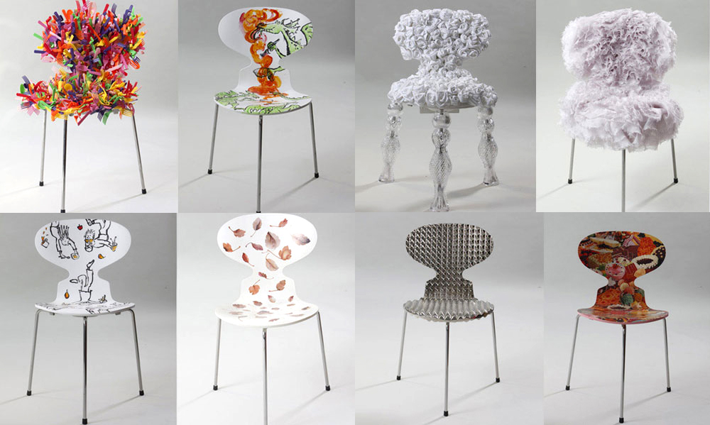 你想象過讓椅子也穿上蕾絲嗎?這項(xiàng)作品的靈感來源于T臺上的模特。當(dāng)然,除了蕾絲椅,還有鉆石椅、彩繪椅、鉚釘椅……這幺多創(chuàng)意椅子,足以讓你大開眼界!