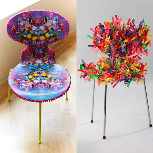 用無以計(jì)數(shù)的彩色餐叉制作成的椅子,特立獨(dú)行,估計(jì)沒有人敢坐! 令人驚艷的繁花椅,設(shè)計(jì)師利用衣著布料打造,色彩明麗,潮味兒十足。