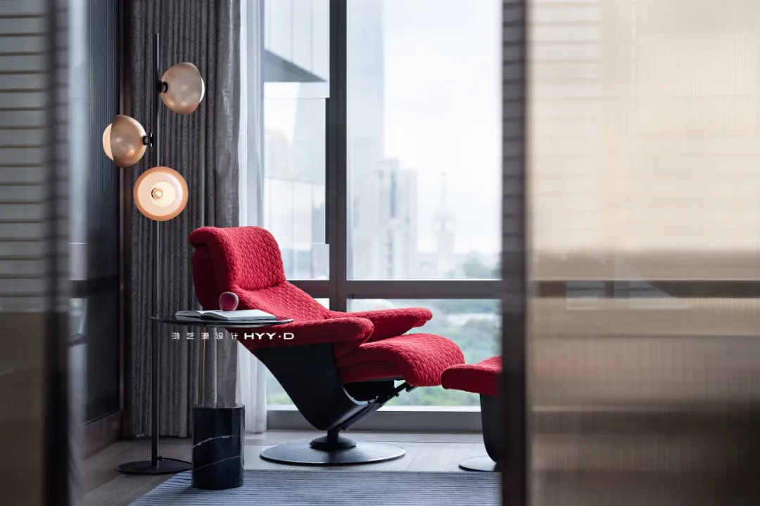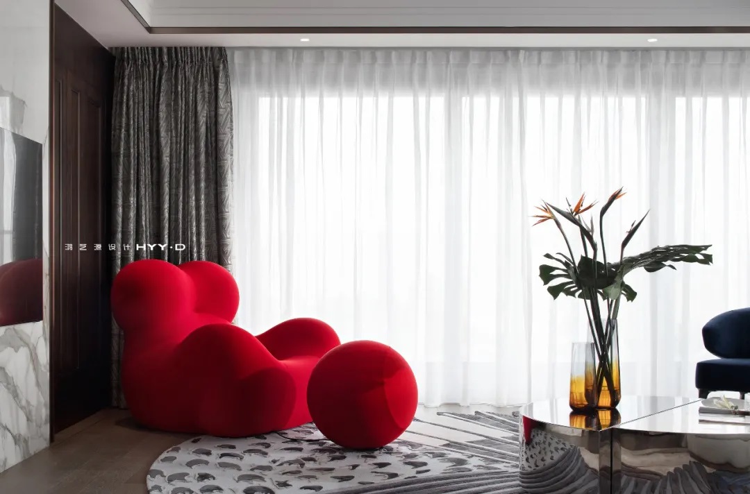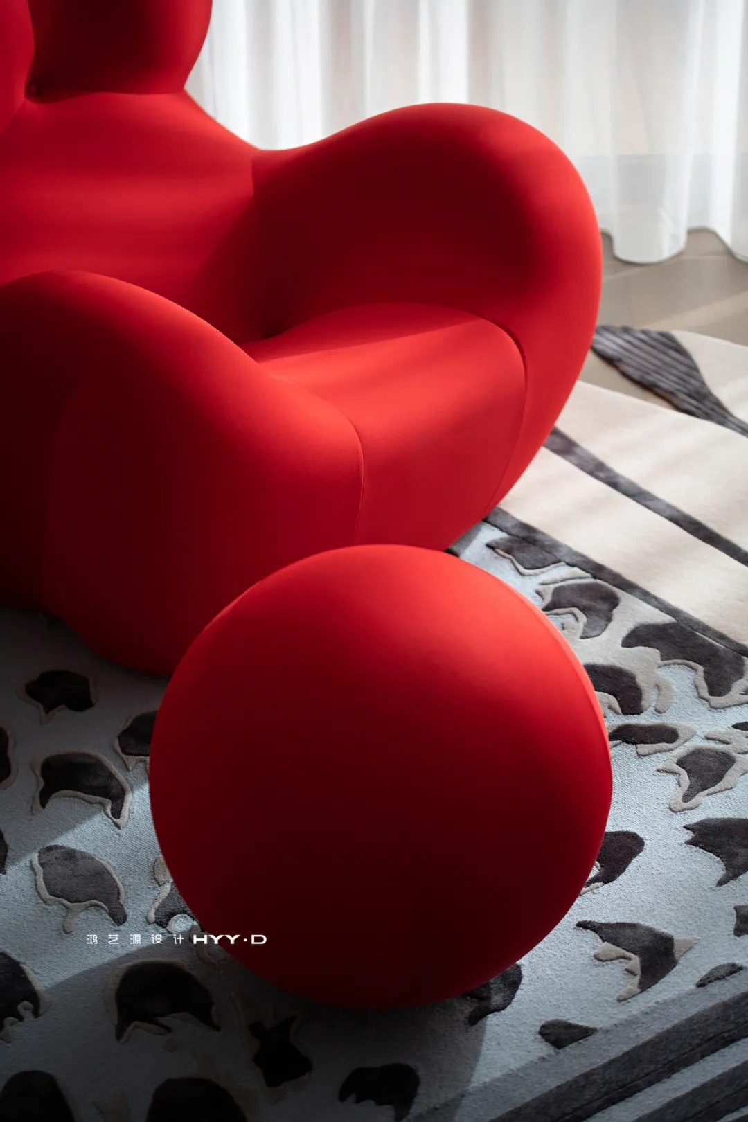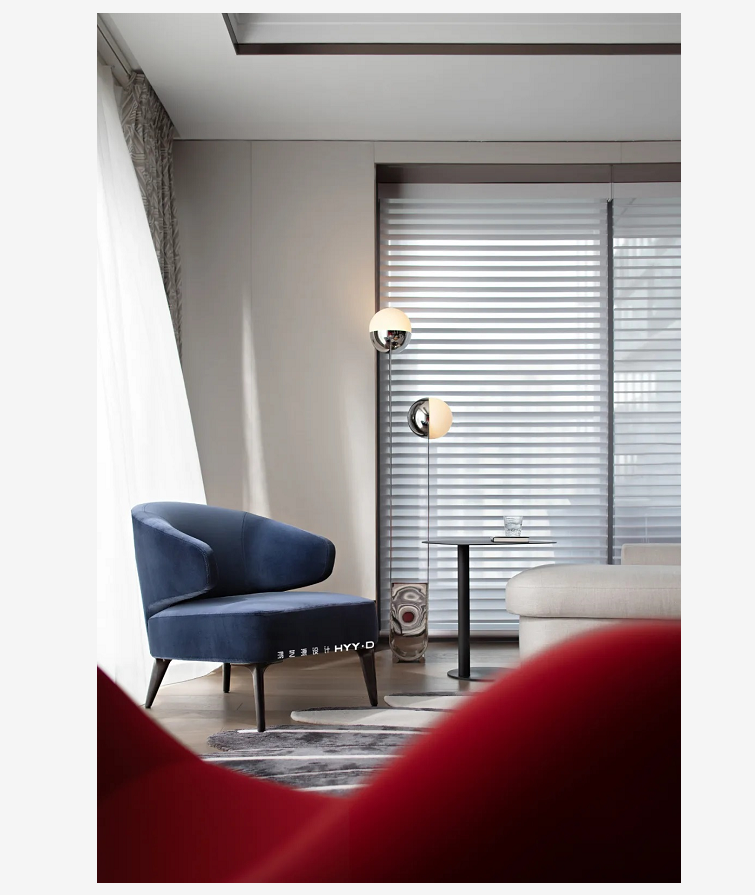 一個(gè)待得住的家,每一個(gè)角落都有著讓人能夠放松的理由。媽媽的懷抱以最柔軟的姿態(tài)散發(fā)著母親般的溫暖與安全感,紅色熱情,如同生活的熱鬧斑斕,那是一種可感知的暖意。藍(lán)色單椅優(yōu)雅紳士,紅藍(lán)撞色融入時(shí)尚的審美趣味,家人小憩、閱讀,靜靜陪伴也是一種無聲的默契。