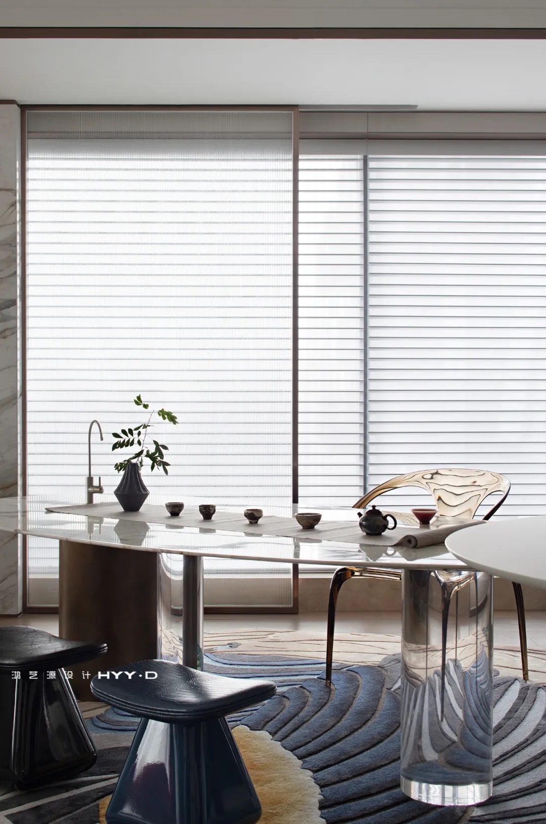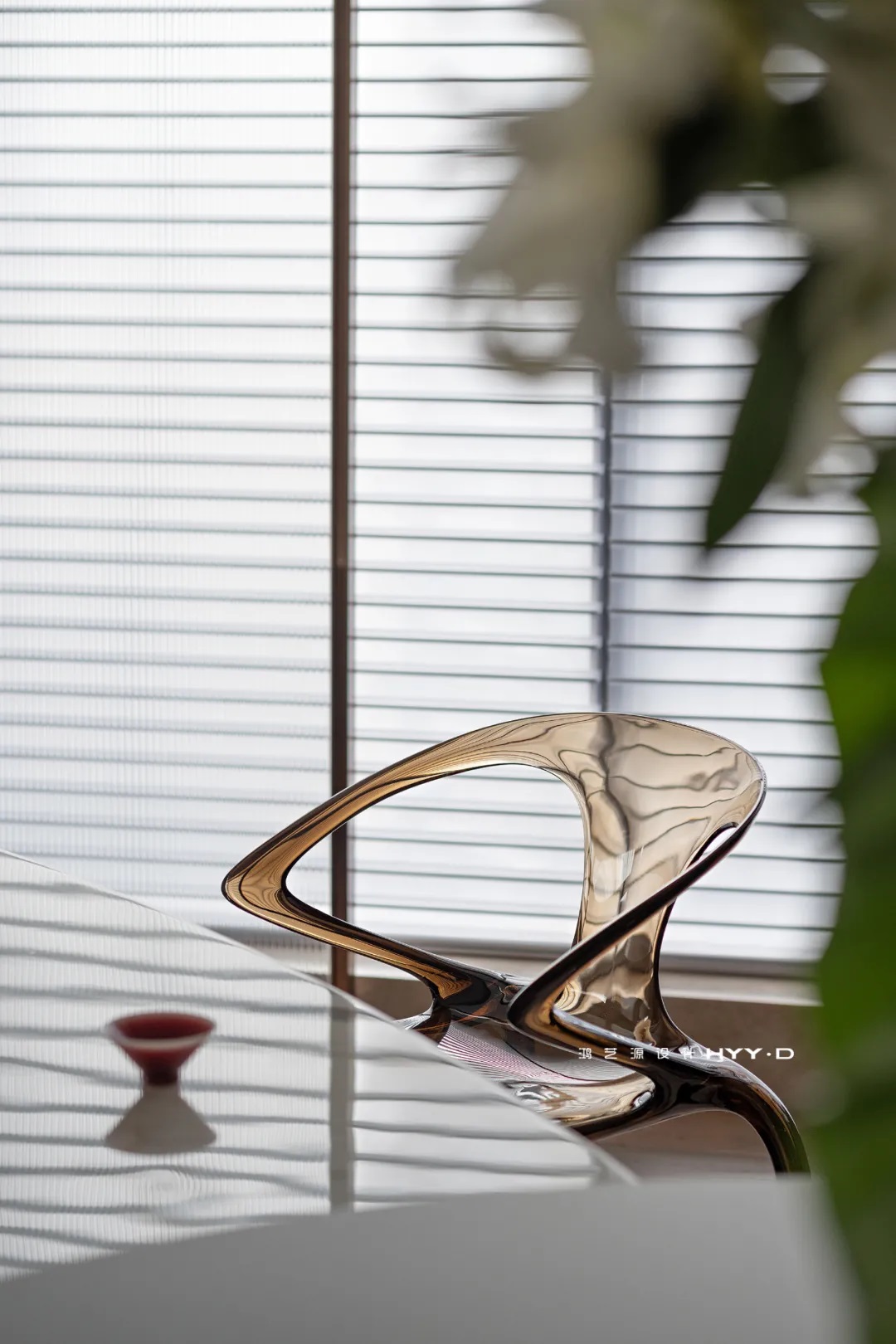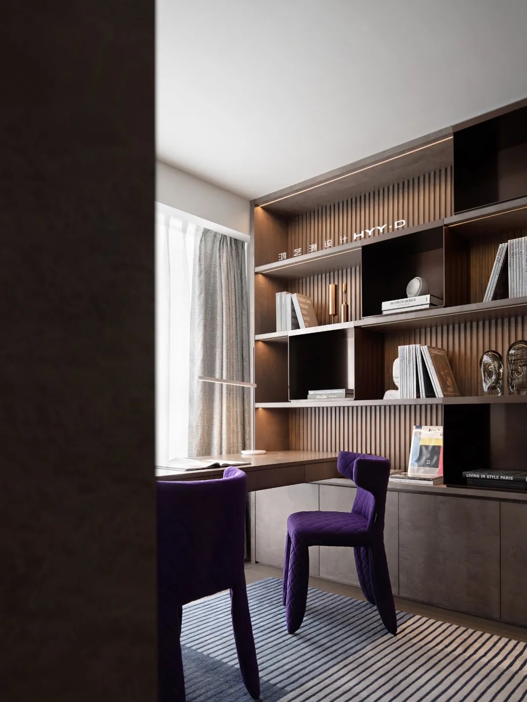 在公共空間,力求讓不同家庭成員的興趣得到最大的釋放。品茶、會(huì)客抑或是靜思、辦公,不同功能的組合延展了關(guān)于家的塑造與暢想。光的浸染隨著時(shí)間的推移為生活增添了幾分慵懶閑適的注腳。