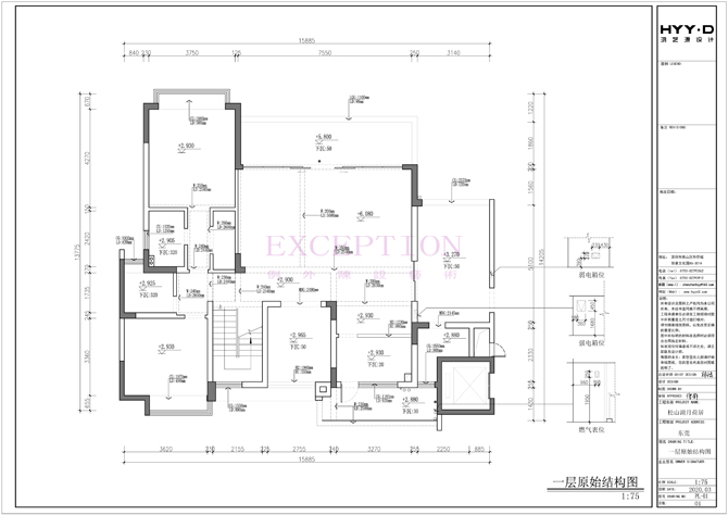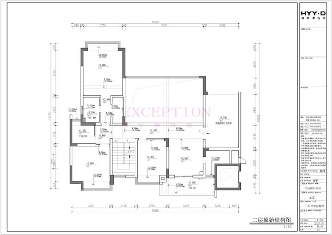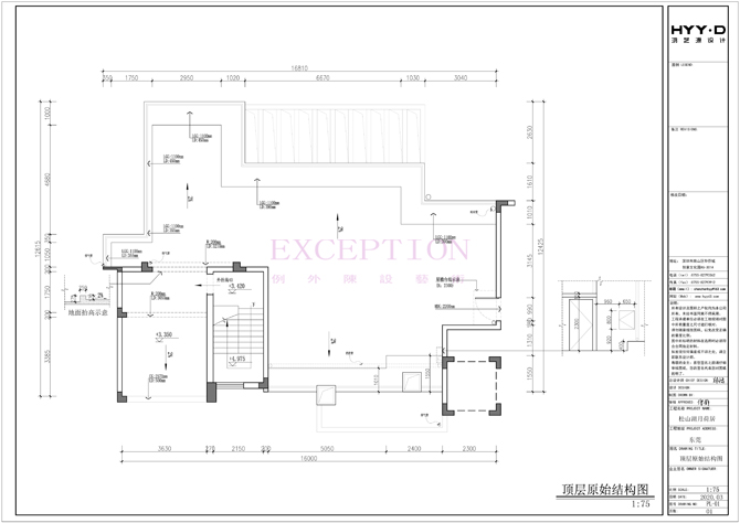東莞松山湖月荷居室內(nèi)設(shè)計頂層原始平面圖