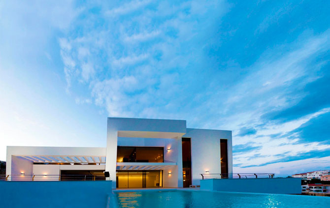 所有這些戶內(nèi)外空間組合在一起共同構(gòu)成了這座“地中海明珠”。簡(jiǎn)潔的色調(diào)、齊全的配套設(shè)施,上天饋贈(zèng)的藍(lán)天大海,每一天都是有如海子詩里“面朝大海,春暖花開”的理想生活。