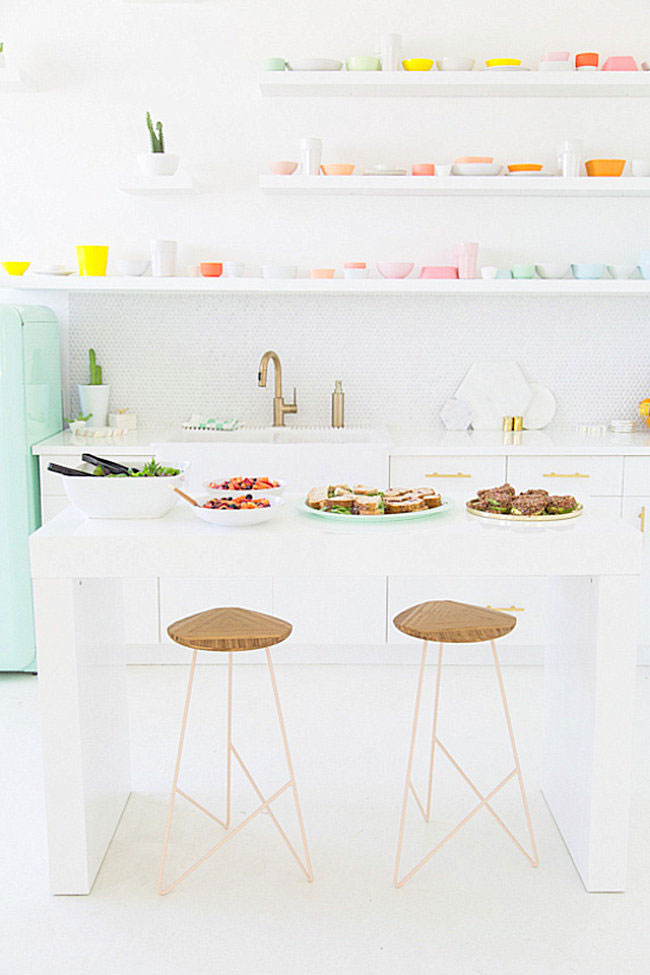 廚房以純白為背景色,通過(guò)碗碟的配色融入一抹抹彩虹。生活之所以多彩,是因?yàn)槿擞闷卟实男木滁c(diǎn)亮了他們。MORE INSP