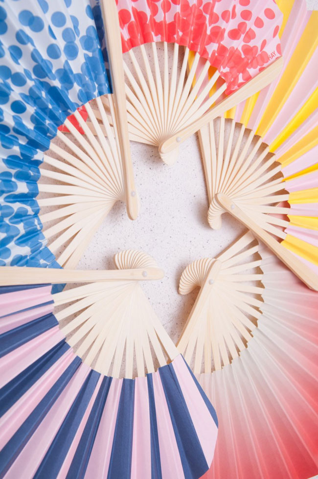 有一種搭配秘訣就是柔和的色彩加上亮色等于完美的設(shè)計(jì)。比如下圖的扇子,用純凈的底色搭配上粉紅、藍(lán)色就是很活潑的配飾。